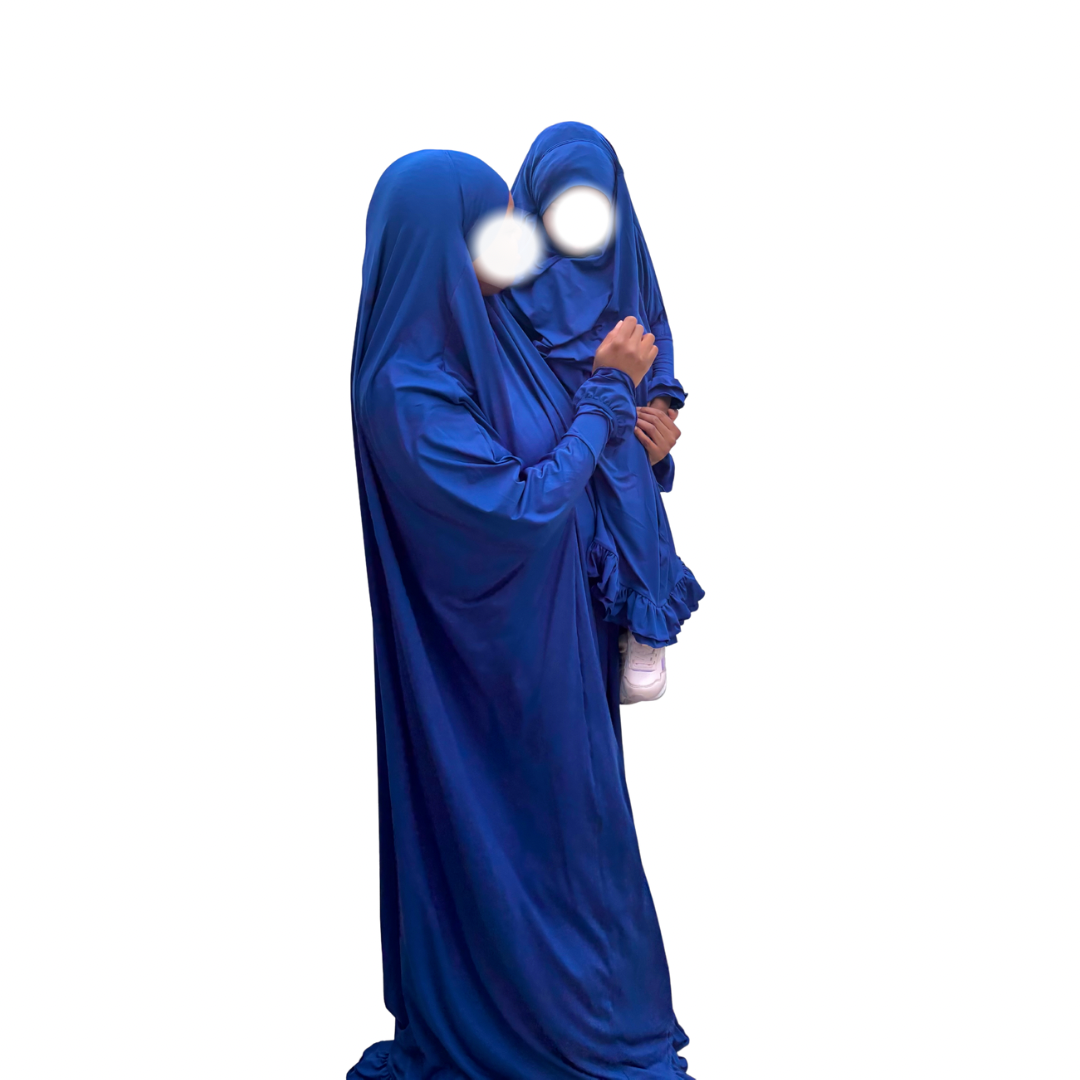 The Perfect Pair set is designed to reflect the confident mother who daughter watches her every step. This radiant royal blue set features a full-length overhead abaya with delicate ruffle details along the sleeves and hem. Perfect for Jumu’ah, Eid, or everyday softness.